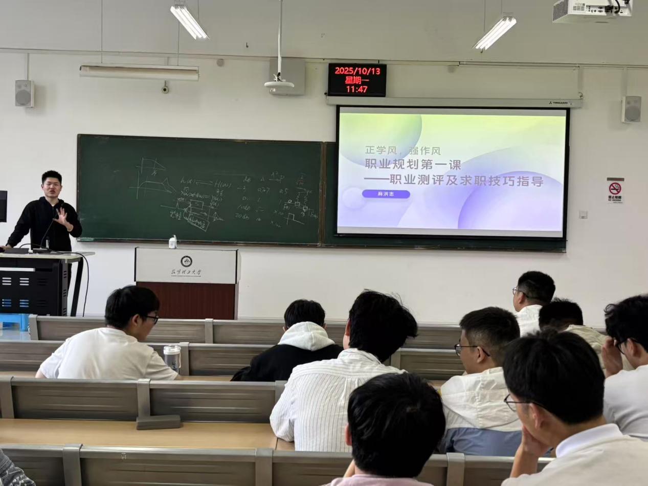 为确保2026届毕业生就业工作圆满完成,自拍流出 于2025年10月14日上午在公教楼544举行2026届毕业生就业导论课,本次导论课由学院党委副书记马思锐主讲,同时邀请到vivo云南人力资源部麻洪志老师为毕业生开展职业测评加和求职技巧指导。