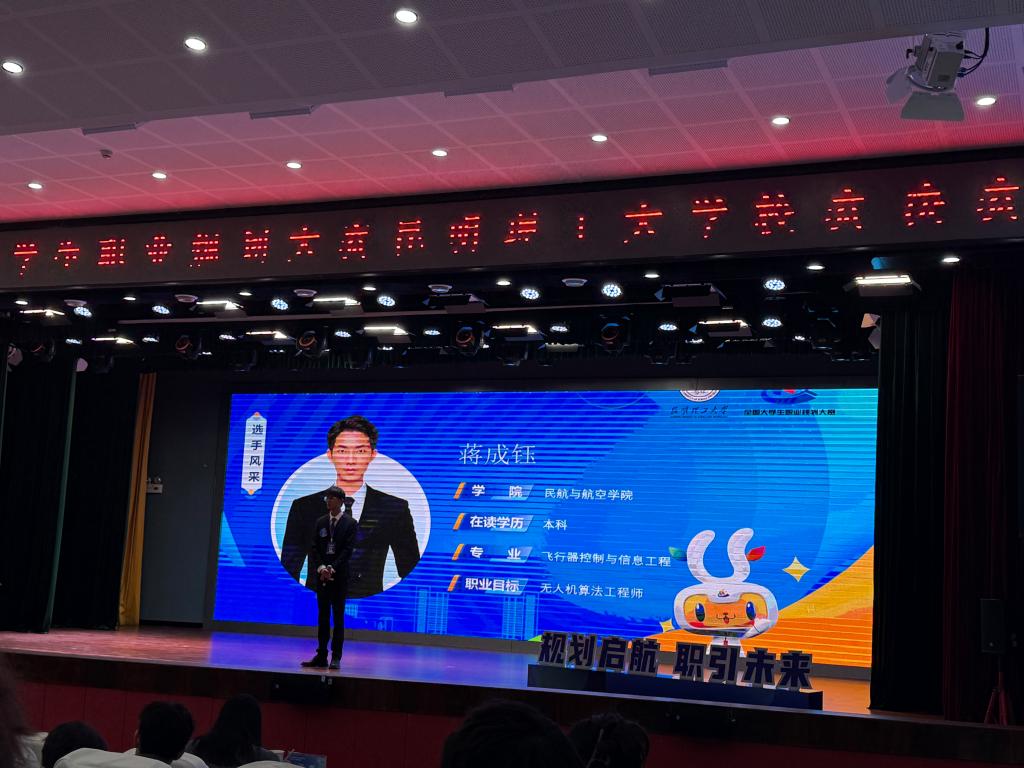 经过学院指导老师多次的修改打磨以及学院前期举选拔赛的实战历练,飞控221班蒋成钰以“算法驱动、低空现行”—面向高原山地农业的无人机算法工程师为题参加比赛,获得就业赛道本科组第二名的好成绩,斩获金奖,飞行241张皓然以“逐梦蓝天、航空报国”—以飞行技术为起点,向着民航飞行员的目标坚定前行为题参加比赛,获得成长赛道第五名的好成绩,斩获银奖。
